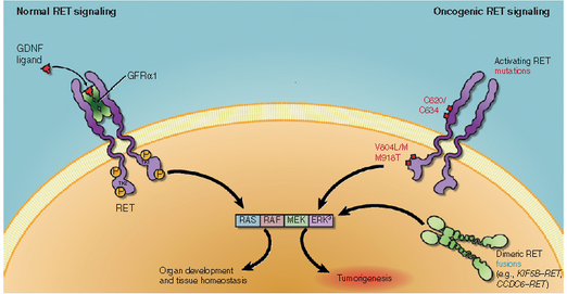 普拉替尼(Pralsetinib)和塞普替尼(Selpercatinib)都是用于治疗RET突变阳性的晚期或转移性甲状腺癌的药物,它们的作用机制相似,但在特定方面可能存在一些差异。 普拉替尼是一种高度选择性的RET激酶抑制剂,它通过抑制RET基因的突变点,阻断了该信号通路的异常激活。这种突变常见于甲状腺癌等恶性肿瘤中,普拉替尼针对这一突变点的选择性使其能够有效地抑制癌细 胞的生长和扩散。此外,普拉替尼还具有较强的抗肿瘤活性,可抑制多种与癌症相关的信号通路,如RAS-MAPK、PI3K-Akt等。 塞普替尼也是一种R…